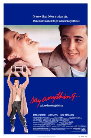 Say Anything (1989) is a Comedy, Drama, Romance movie. It is from United States. It holds an IMDb rating of 7.3 based on 101154 votes. Key cast members include John Cusack, Ione Skye, John Mahoney, Lili Taylor, Amy Brooks, Pamela Adlon.